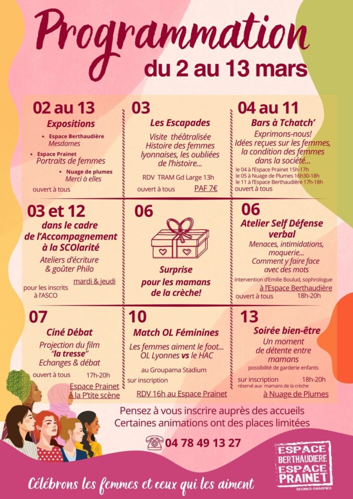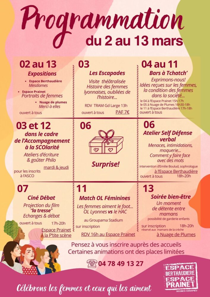 L’Espace Berthaudiere et l’Espace Prainet vous propose durant deux semaines, du 2 au 13 mars, des animations, soirées et sorties culturelles afin de célébrer toutes les femmes.
