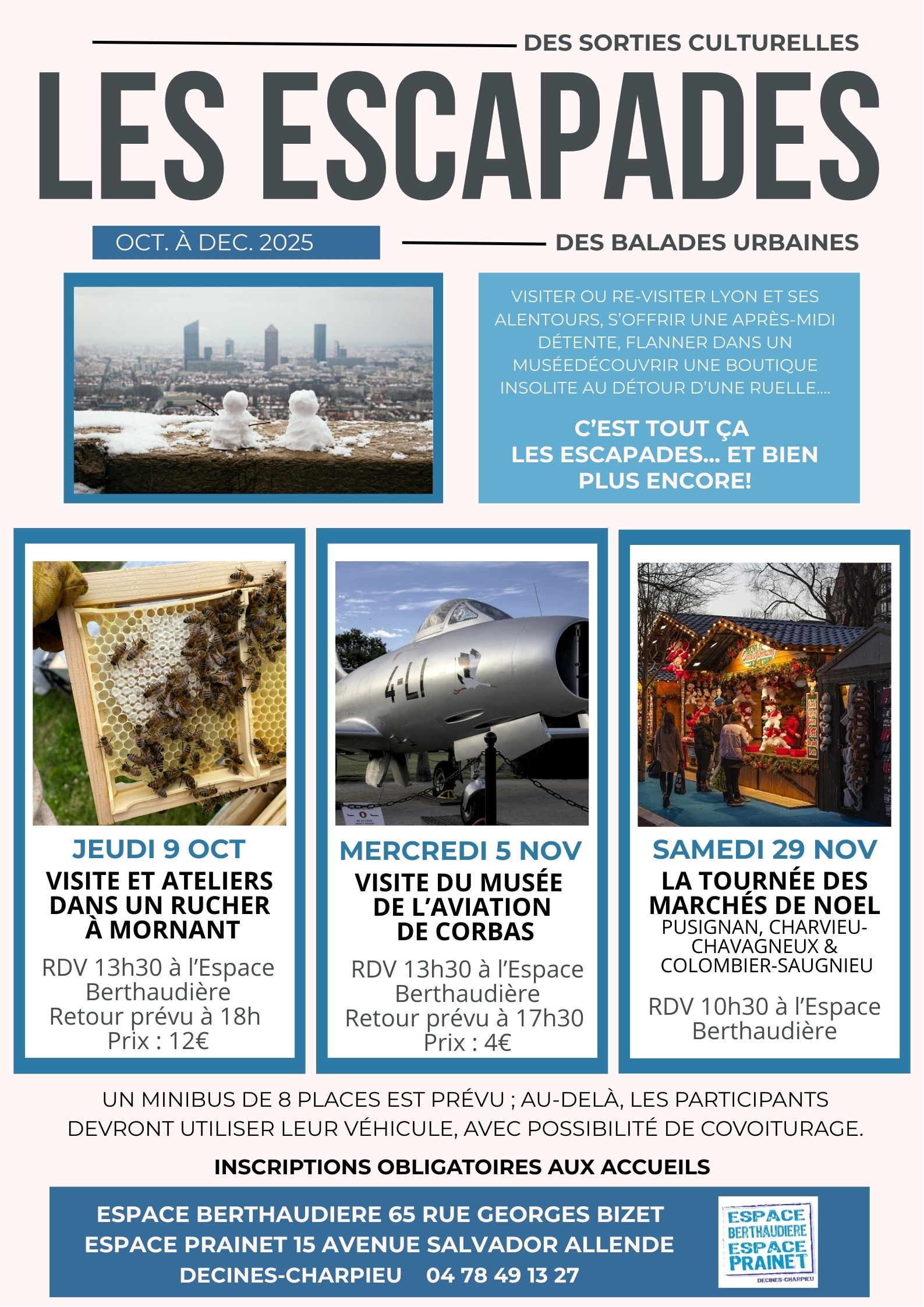 Espace Berthaudière 04 78 49 13 27 |65 rue Georges Bizet - 69150 Décines | Espace Prainet 04 26 78 71 30 | 15 avenue Salvador Allende, 69150 Décines |
